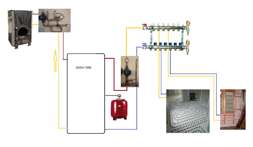 Si vous optez pour un poêle à granulés bouilleur, si un ballon est exigé, se référer aux préconisations du fabricant.