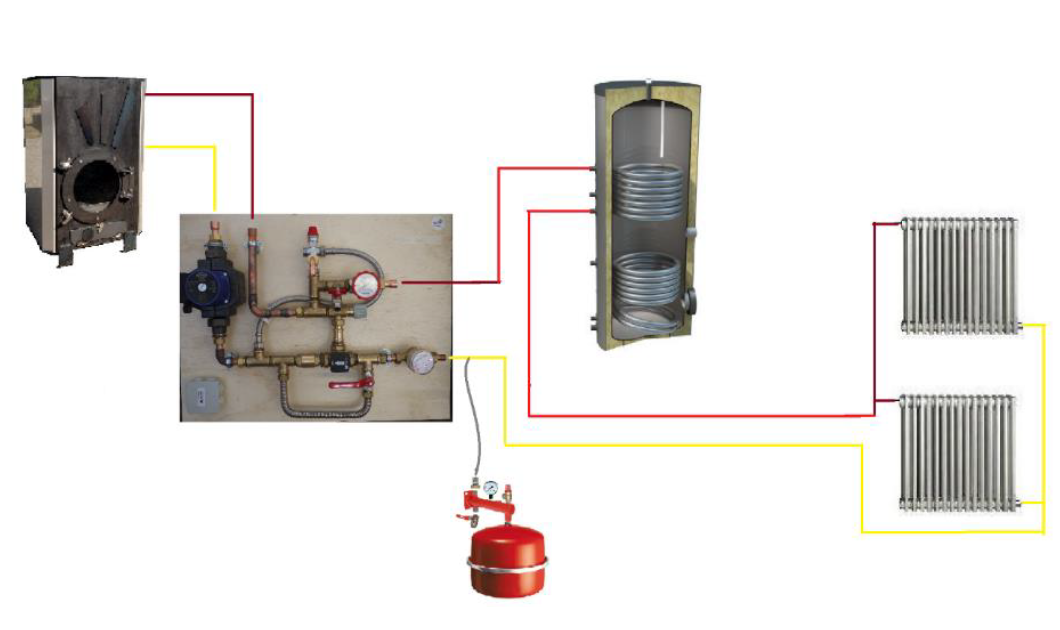 – Tout à fait adapté à un poêle à granulés bouilleur pourvu qu’il ne soit pas imposé un ballon de stockage par le fabricant.