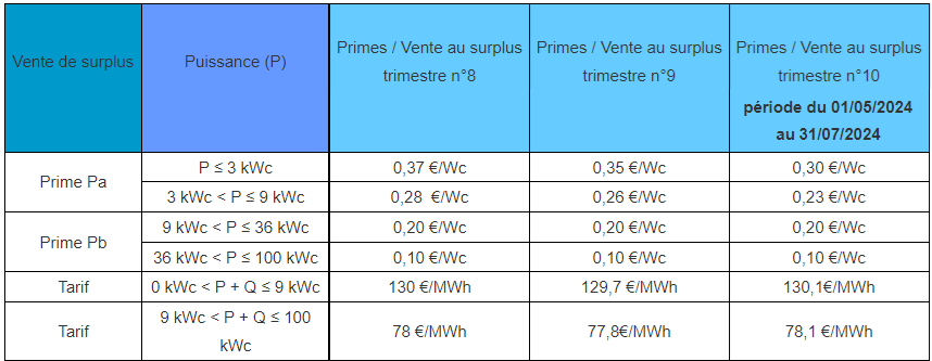 Ce surplus peut être donné gracieusement au fournisseur d’électricité ou revendu selon les tarifs suivants :